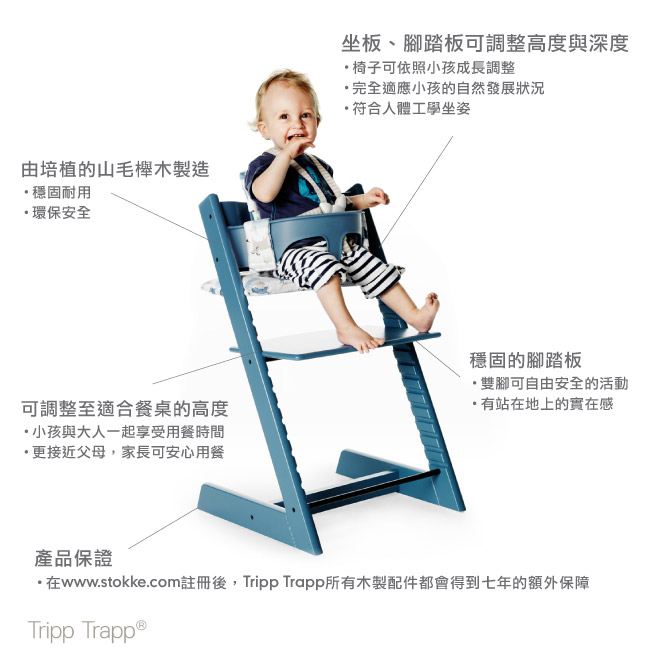 ● 適用餐桌:正常餐桌通常高72cm,Tripp Trapp®可完全地配合72~76cm高的桌子